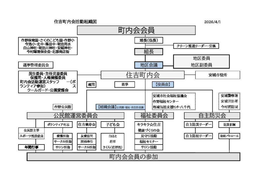 また、町内会より安城市へは各種補助金の申請。町内土木要望書。各町内会事業報告