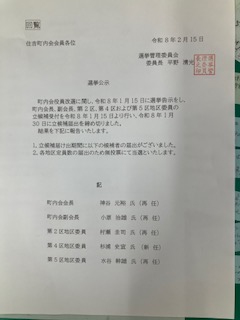 町内会役員改選に関し、令和8年1月15日に選挙告示をし、